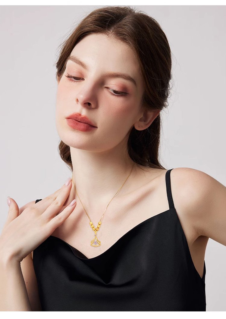 هذه المجموعة من المجوهرات الذهب الخالص 24K ترمز إلى السعادة والشجاعة. الألماس الرئيسي الذي يبلغ قطره 3 ملم في المركز تم اختياره بعناية ليتوافق مع معايير 4C لمعهد الأحجار الكريمة الأمريكي، مع 13 ماسة صغيرة مقطوعة، تتألق تحت تأثير الذهب 24K.